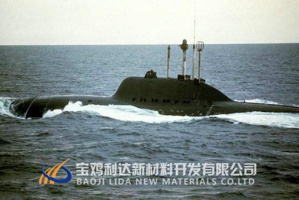 在艦船上的應(yīng)用,前蘇聯(lián)1970年建造了1艘全鈦殼體的核動力攻擊潛艇,以后又建造了4艘,每艘用鈦合金3500t。1982年制成“臺風(fēng)號”鈦殼核潛艇,每艘用鈦合金9000t。從而打破了只限于魚雷發(fā)射筒、深潛器等用鈦的局面。結(jié)構(gòu)鈦合金在常規(guī)兵器上用量不大,主要用于火炮、槍械和其他輔助裝備上。