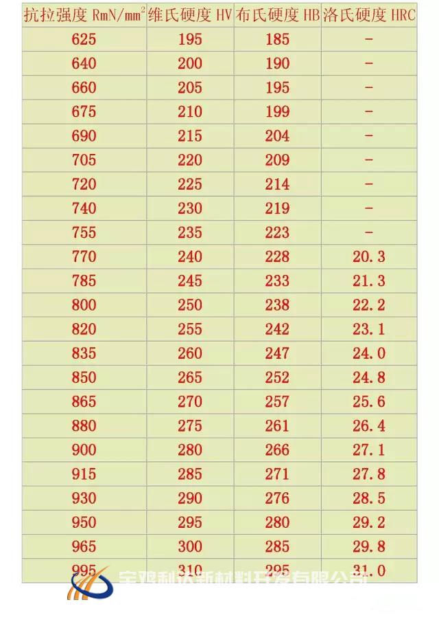 以下是常用范圍的鋼材抗拉強(qiáng)度與維氏硬度、布氏硬度、洛氏硬度的對(duì)照表。